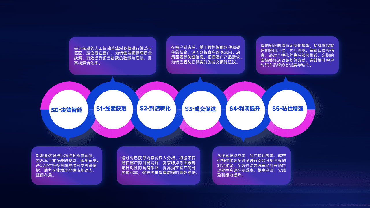通过拓宽潜在客户来源、、、、优化线索分配并提高到店转化率,,,,以增强销售效率。。同时,,利用线索数据不断优化分析模型,,,有效提升转化率,,扩大营销影响力。。。